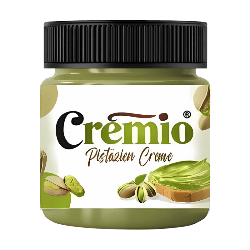 Crème de PISTACHE, sucre, PISTACHES (25 %), huiles végétales (tournesol, palme), poudre de LACTOSÉRUM déminéralisée (LAIT), poudre de LAIT écrémé (LAIT), émulsifiant (lécithine de SOJA), colorants (curcuma, complexe chlorophylline-cuivre).