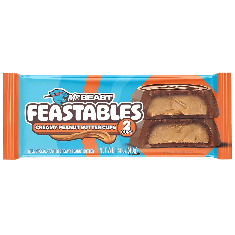 Feastables MrBeast Creamy Peanut Butter Cups 40g est une gourmandise chocolatée composée de cups au chocolat garnies d’un cœur crémeux au beurre de cacahuètes. Inspirées du style des célèbres peanut butter cups américaines, ces bouchées offrent un équilibre parfait entre le chocolat fondant et la douceur riche du peanut butter.