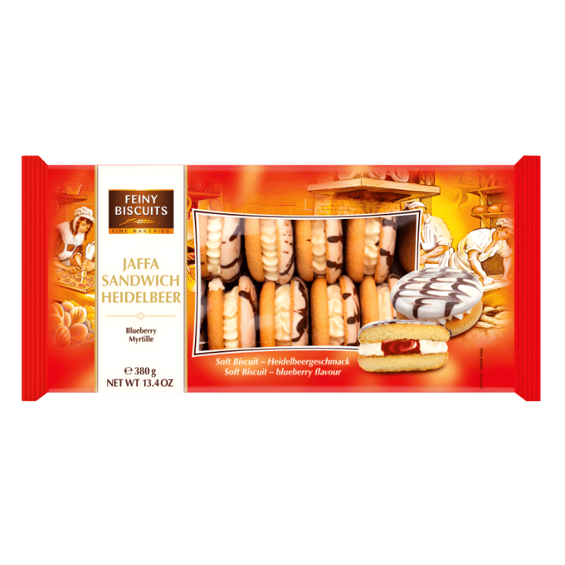 Fabriqués en Allemagne, les Feiny Jaffa Sandwich Myrtille se conservent dans un endroit frais et sec, à l’abri de la chaleur, afin de préserver leur fraîcheur et leur texture. Retrouve-les chez ElMercado et découvre une sélection de biscuits européens originaux et gourmands.