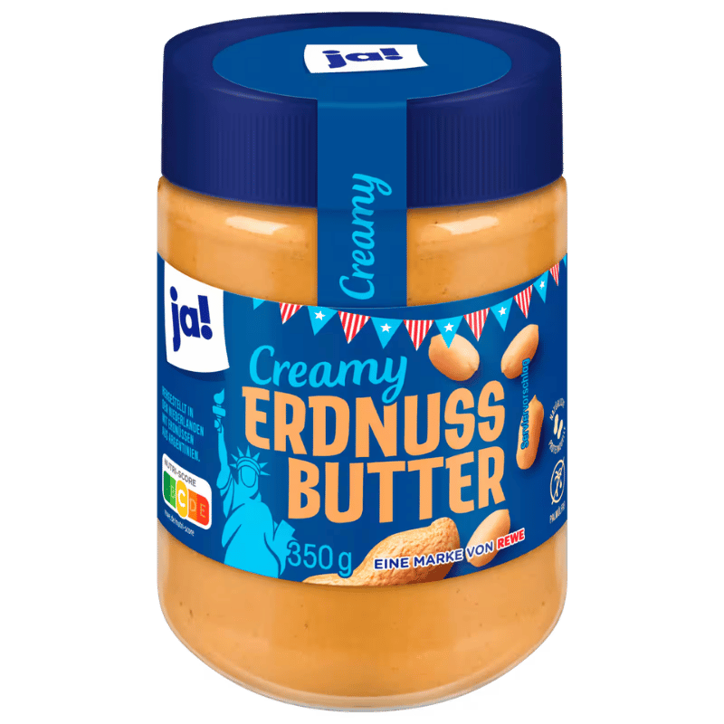 Ja! Creamy Erdnuss Butter 350g est un beurre de cacahuètes onctueux et lisse, parfait pour les amateurs de peanut butter au goût riche et naturel. Sa texture creamy sans morceaux permet une tartine facile et agréable, idéale pour le petit-déjeuner, le goûter ou pour ajouter une touche gourmande à différentes recettes.