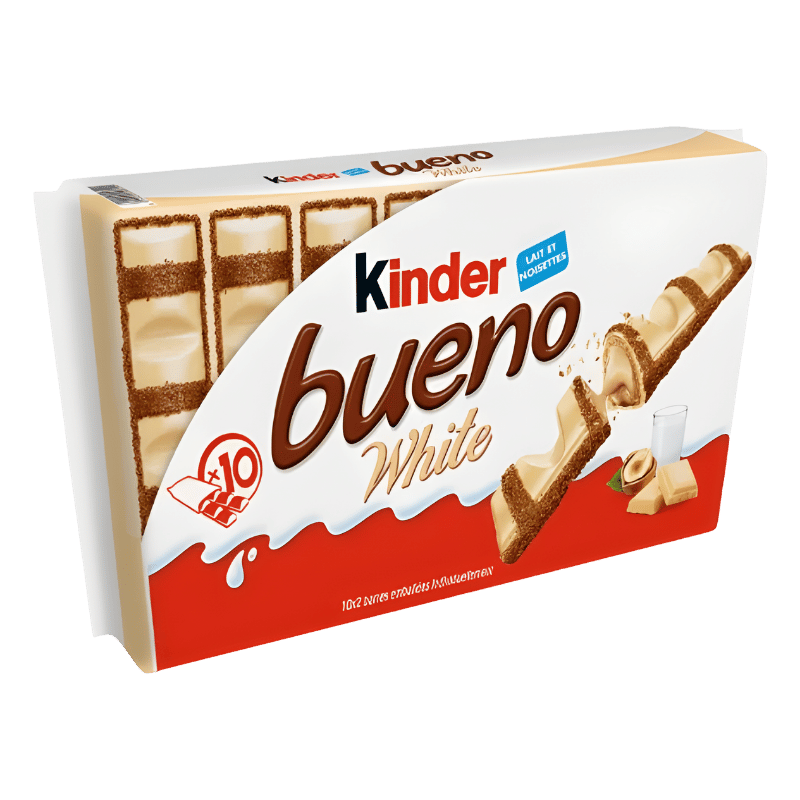 Marque Kinder Saveur Chocolat Blanc, Noisette Poids 2×10 pièces (390g) Allergènes Voir les ingrédients en gras Origine