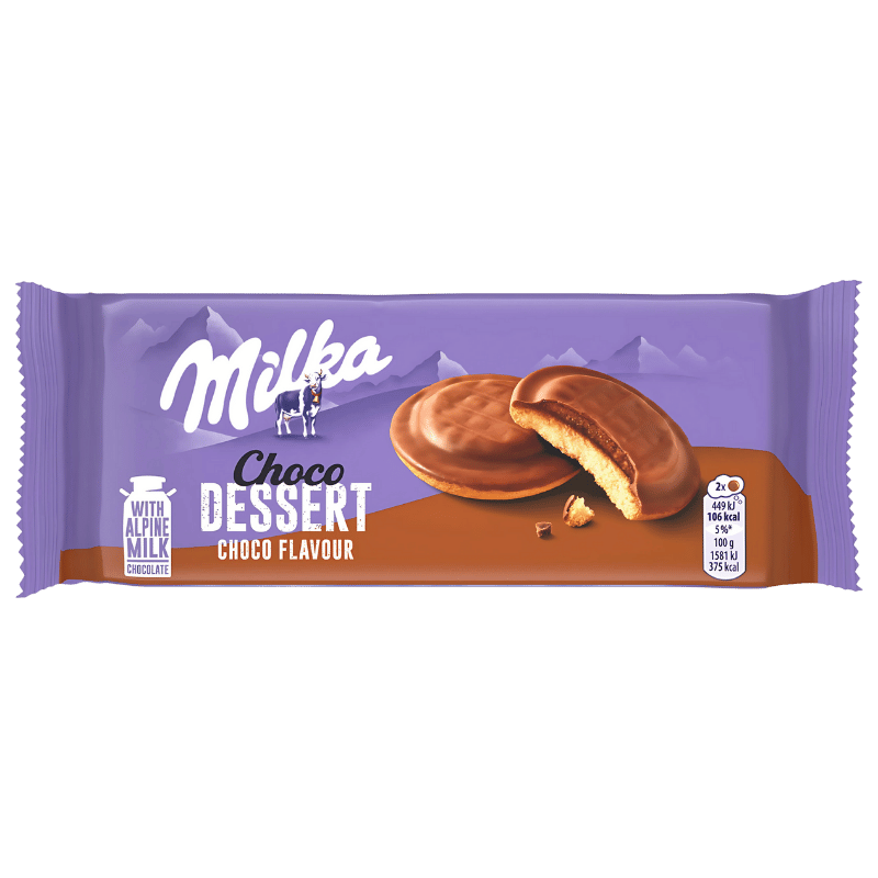 Milka Choco Dessert Goût Chocolat est une délicieuse pâtisserie chocolatée, moelleuse et fondante, directement inspirée du célèbre chocolat au lait Milka. Fabriqué en Suisse, ce dessert combine une génoise tendre à un cœur au goût chocolaté intense, pour une pause sucrée réconfortante et savoureuse.