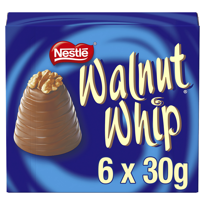 Découvrez le Nestlé Walnut Whip, une délicieuse combinaison de chocolat au lait, d’une garniture fondante et d’une noix croquante sur le dessus. Ces six bouchées gourmandes sont parfaites pour accompagner vos moments de détente ou pour partager avec vos proches.