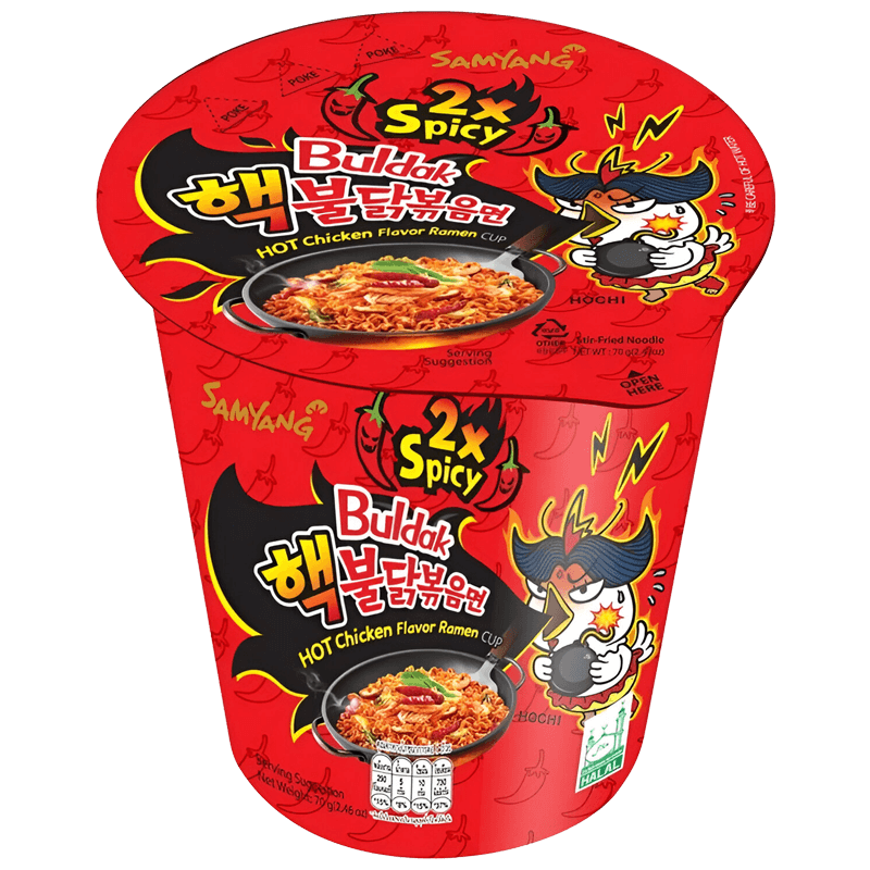 Nouilles : Farine de blé , Amidon de tapioca, Huile de palme, Gluten de blé , Sel, Émulsifiant[Lécithine(E322)], Huile de soja , Régulateur d’acidité[Carbonate de potassium(E501), Carbonate de sodium(E500), Phosphate de sodium dibasique(E339), Polyphosphate de sodium (E452), pyrophosphate de sodium (E450), acide citrique (E330), extrait d’oignon, épaississant [gomme de guar (E412)], eau,- Soupe à l’huile d’arôme de thé vert : eau, sucre blanc, poudre d’arôme artificiel de poulet, sauce soja. , Poudre de poivron rouge, huile de soja , poudre d’oignon, extrait de piment, exhausteur de goût [L-glutamate monosodique (E621)], poudre d’ail, sel, fécule de pomme de terre, poudre d’extrait de levure, poudre de poivre noir, flocons de poudre de curry : sésame rôti , Lave rôtie