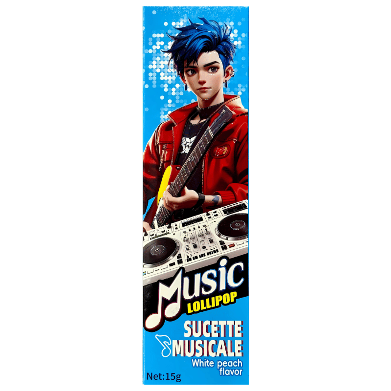 Plongez dans une expérience sucrée originale avec la sucette musicale à la pêche blanche. Cette friandise combine plaisir gustatif et divertissement : en la dégustant, elle joue une petite mélodie grâce à son embout sonore intégré. Sa saveur douce et fruitée de pêche blanche séduira aussi bien les enfants que les adultes en quête d’une touche d’amusement sucré.