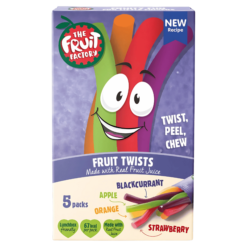 Jus de pomme à partir de concentré (37 %), Amidon de blé, Sirop de glucose, Sucre, Fécule de maïs, Humectant (Sorbitol), Régulateur d’acidité (Acide citrique), Émulsifiant (Mono- et diglycérides d’acides gras), Arômes naturels, Huile de tournesol, Agent de glaçage (Cire de carnauba), Concentrés de jus de fruits et légumes (Carotte violette, Carotte, Hibiscus), Épinard séché, Colorant (bêta-carotène).